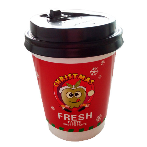 insulating double wall paper tea cups and coffee double wall paper cups with black lid Images |